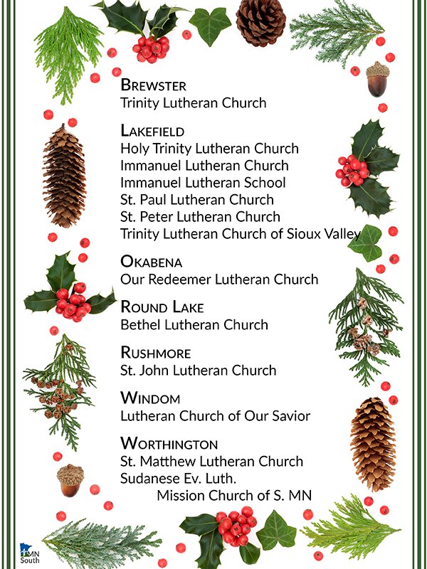 This week, please join us in praying for the congregations, schools, commissioned ministers, and pastors of Circuit 23, the Worthington Circuit (Circuit Visitor: Rev. Adam Jacobsen).
